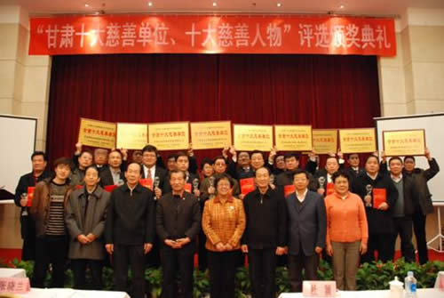由甘肅省慈善總會(huì)和甘肅日?qǐng)?bào)社聯(lián)合主辦、每日甘肅網(wǎng)獨(dú)家承辦的2010年甘肅省十大“慈善單位”、“慈善人物”頒獎(jiǎng)典禮于2010年12月28日在蘭州舉行。經(jīng)過(guò)激烈角逐,甘肅國(guó)芳工貿(mào)集團(tuán)股份有限公司榮幸地被評(píng)為“甘肅十大慈善單位”之一。