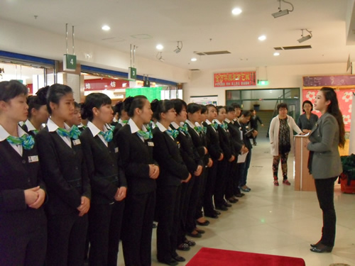 2013年4月9日是一個(gè)普通的工作日,但卻是國芳集團(tuán)收銀部崗位技能管理水平提升和發(fā)展歷程上非常重要的一天,因?yàn)榻裉靽技瘓F(tuán)零售板塊蘭州地區(qū)收銀員職業(yè)技能評(píng)定工作正式拉開帷幕。早上8點(diǎn)整,在蘭州國芳綜超廣場店正式召開了本次活動(dòng)的動(dòng)員會(huì),動(dòng)員會(huì)由收銀部經(jīng)理韓曉麗女士主持,蒞臨現(xiàn)場的公司領(lǐng)導(dǎo)有集團(tuán)總裁助理、財(cái)務(wù)總監(jiān)余麗華女士,集團(tuán)總裁助理、人力資源總監(jiān)孟麗女士,集團(tuán)培訓(xùn)經(jīng)理、蘭州百貨人力資源經(jīng)理孫曉輝女士,綜超人力資源經(jīng)理馬琳先生。