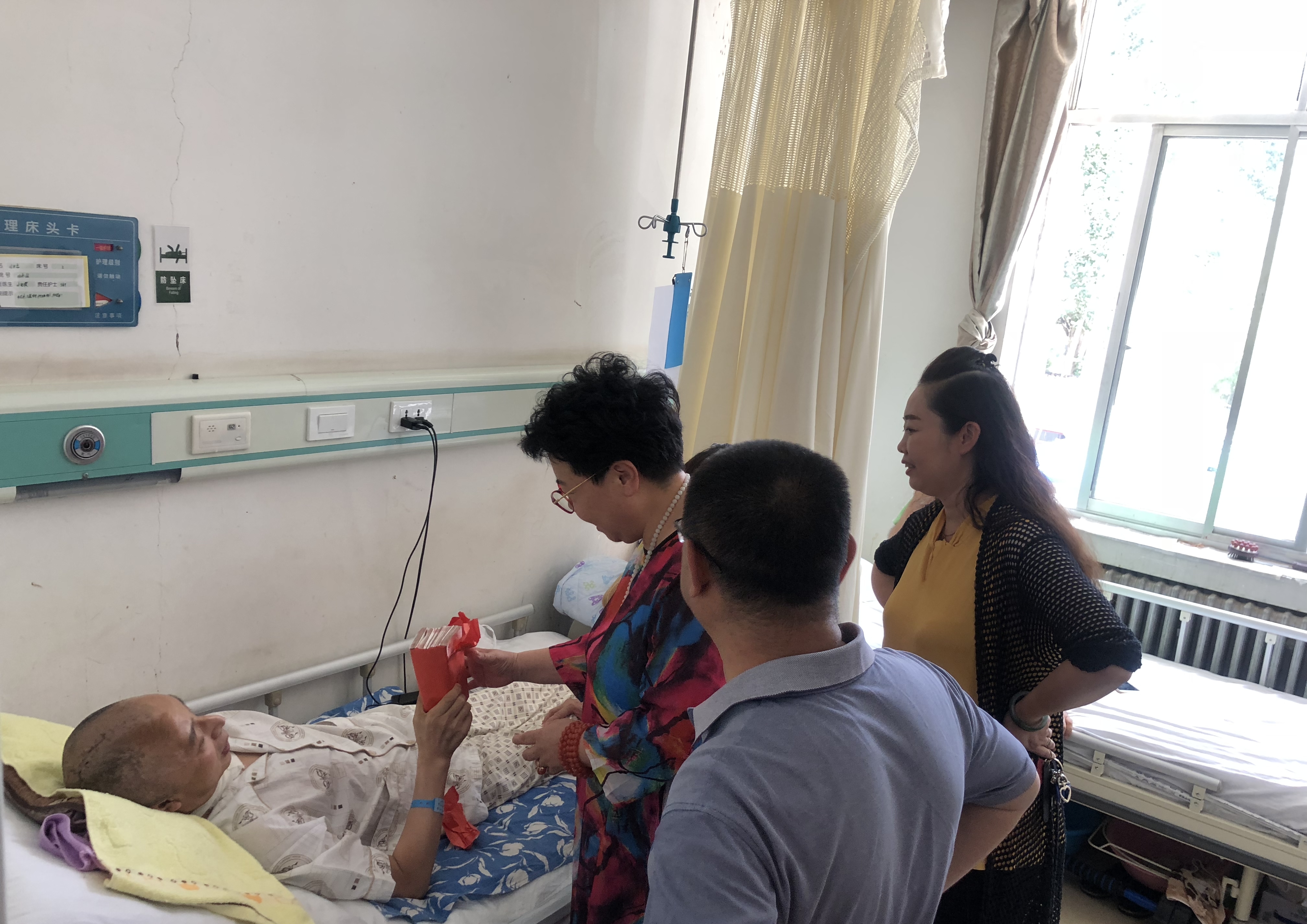 “這是公司的一點(diǎn)心意,希望能幫助你們度過(guò)難關(guān)…”6月28日下午,甘肅國(guó)芳工貿(mào)(集團(tuán))股份有限公司董事會(huì)董事、財(cái)務(wù)總監(jiān)兼工會(huì)主席,人力資源總監(jiān)以及黨委常務(wù)副書(shū)記一行人驅(qū)車(chē)趕往蘭州大學(xué)第一醫(yī)院東崗院區(qū),慰問(wèn)公司患病職工閆世忠,并代表公司送上愛(ài)心捐款50000元,令閆世忠及其家人備受感動(dòng)和鼓舞。