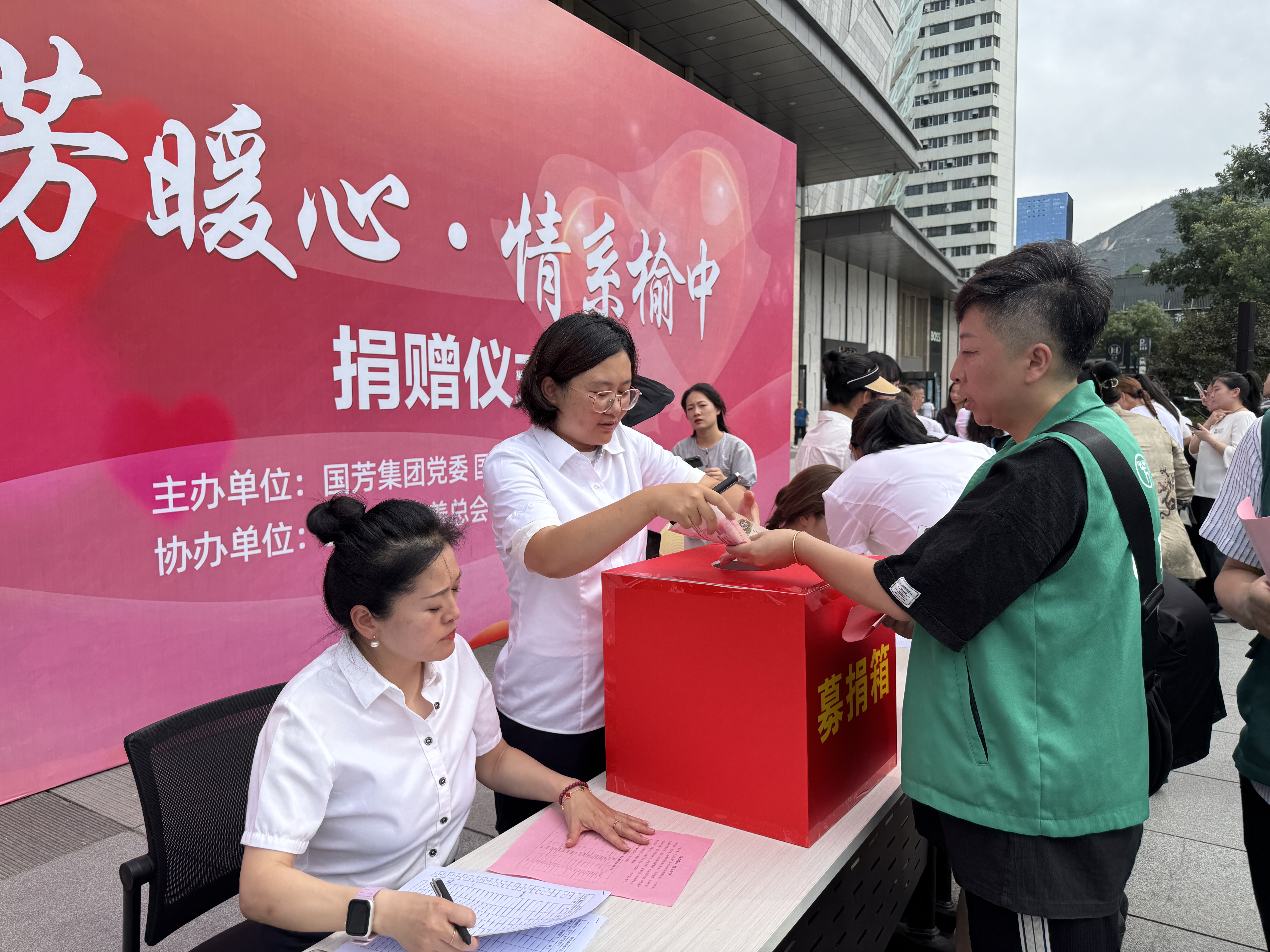 本次捐贈不僅是集團(tuán)層面的行動,更是一次全員參與的愛心接力。在集團(tuán)黨委和工會的號召下,從總部到外阜門店,國芳員工紛紛行動起來。儀式現(xiàn)場,蘭州地區(qū)的員工代表排起長隊,將凝聚著個人心意的善款投入捐款箱。在國芳這個大家庭,不僅服務(wù)市民的“煙火氣”,更懂得傳遞人間的“真善美”。
