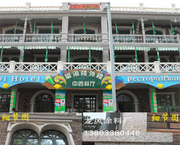 真石漆是復(fù)層涂料,同底漆、防水面漆組成。是以純丙烯酸聚合物及天然彩砂為原料,涂層堅(jiān)硬,粘結(jié)性好,耐用時(shí)間超長(zhǎng),防污性好,阻燃,耐酸堿。