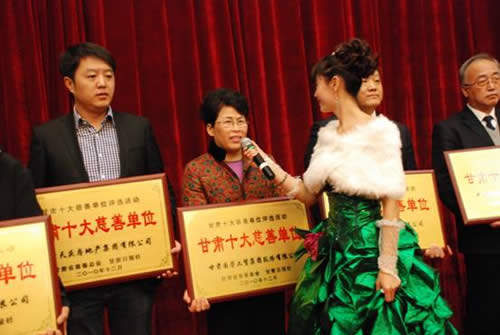 由甘肅省慈善總會(huì)和甘肅日?qǐng)?bào)社聯(lián)合主辦、每日甘肅網(wǎng)獨(dú)家承辦的2010年甘肅省十大“慈善單位”、“慈善人物”頒獎(jiǎng)典禮于2010年12月28日在蘭州舉行。經(jīng)過(guò)激烈角逐,甘肅國(guó)芳工貿(mào)集團(tuán)股份有限公司榮幸地被評(píng)為“甘肅十大慈善單位”之一。