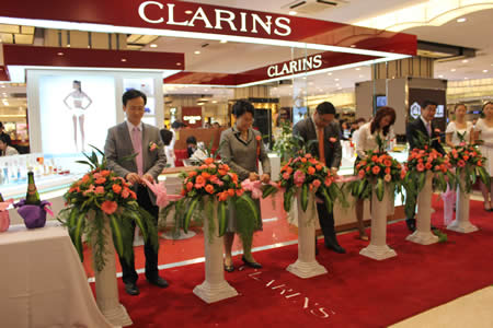 國芳百貨領(lǐng)導(dǎo)與嬌韻詩公司領(lǐng)導(dǎo)為專柜開業(yè)剪彩