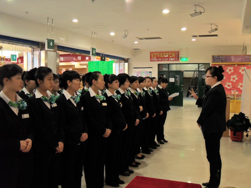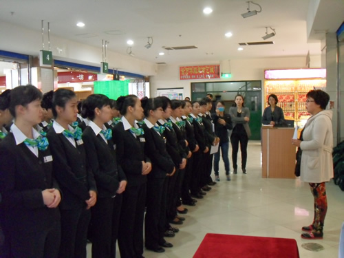 2013年4月9日是一個(gè)普通的工作日,但卻是國芳集團(tuán)收銀部崗位技能管理水平提升和發(fā)展歷程上非常重要的一天,因?yàn)榻裉靽技瘓F(tuán)零售板塊蘭州地區(qū)收銀員職業(yè)技能評(píng)定工作正式拉開帷幕。早上8點(diǎn)整,在蘭州國芳綜超廣場店正式召開了本次活動(dòng)的動(dòng)員會(huì),動(dòng)員會(huì)由收銀部經(jīng)理韓曉麗女士主持,蒞臨現(xiàn)場的公司領(lǐng)導(dǎo)有集團(tuán)總裁助理、財(cái)務(wù)總監(jiān)余麗華女士,集團(tuán)總裁助理、人力資源總監(jiān)孟麗女士,集團(tuán)培訓(xùn)經(jīng)理、蘭州百貨人力資源經(jīng)理孫曉輝女士,綜超人力資源經(jīng)理馬琳先生。