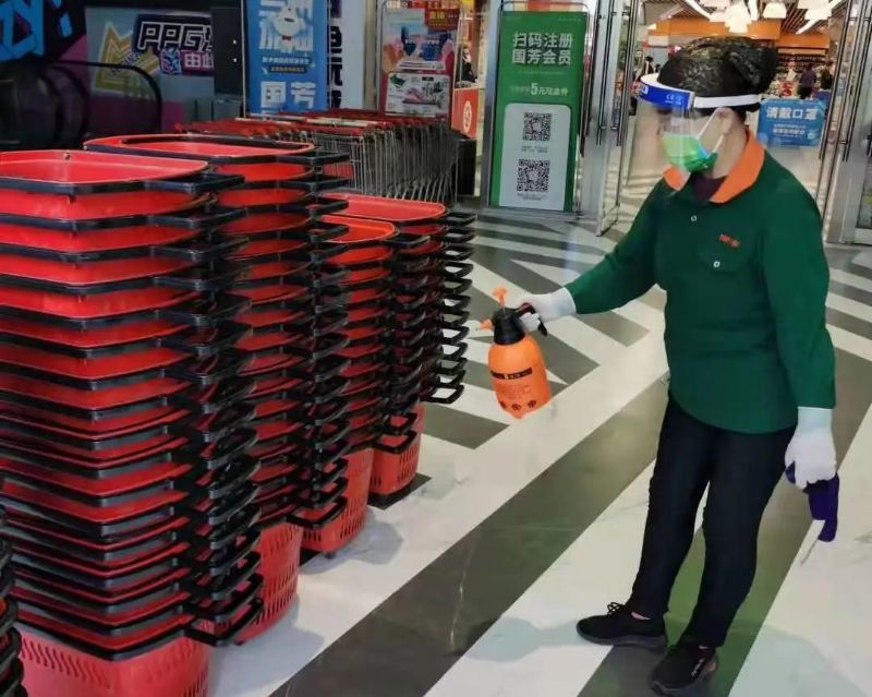 公司第一時間統(tǒng)計全體員工健康安全狀況,對商場外圍、各出入口進(jìn)行整體消殺;百貨、超市公共區(qū)域設(shè)施、電梯、衛(wèi)生間等區(qū)域每兩小時進(jìn)行消殺;開啟商場新風(fēng)系統(tǒng)進(jìn)行空氣對流,并對空調(diào)系統(tǒng)進(jìn)行消殺,為顧客營造安全放心的購物環(huán)境。