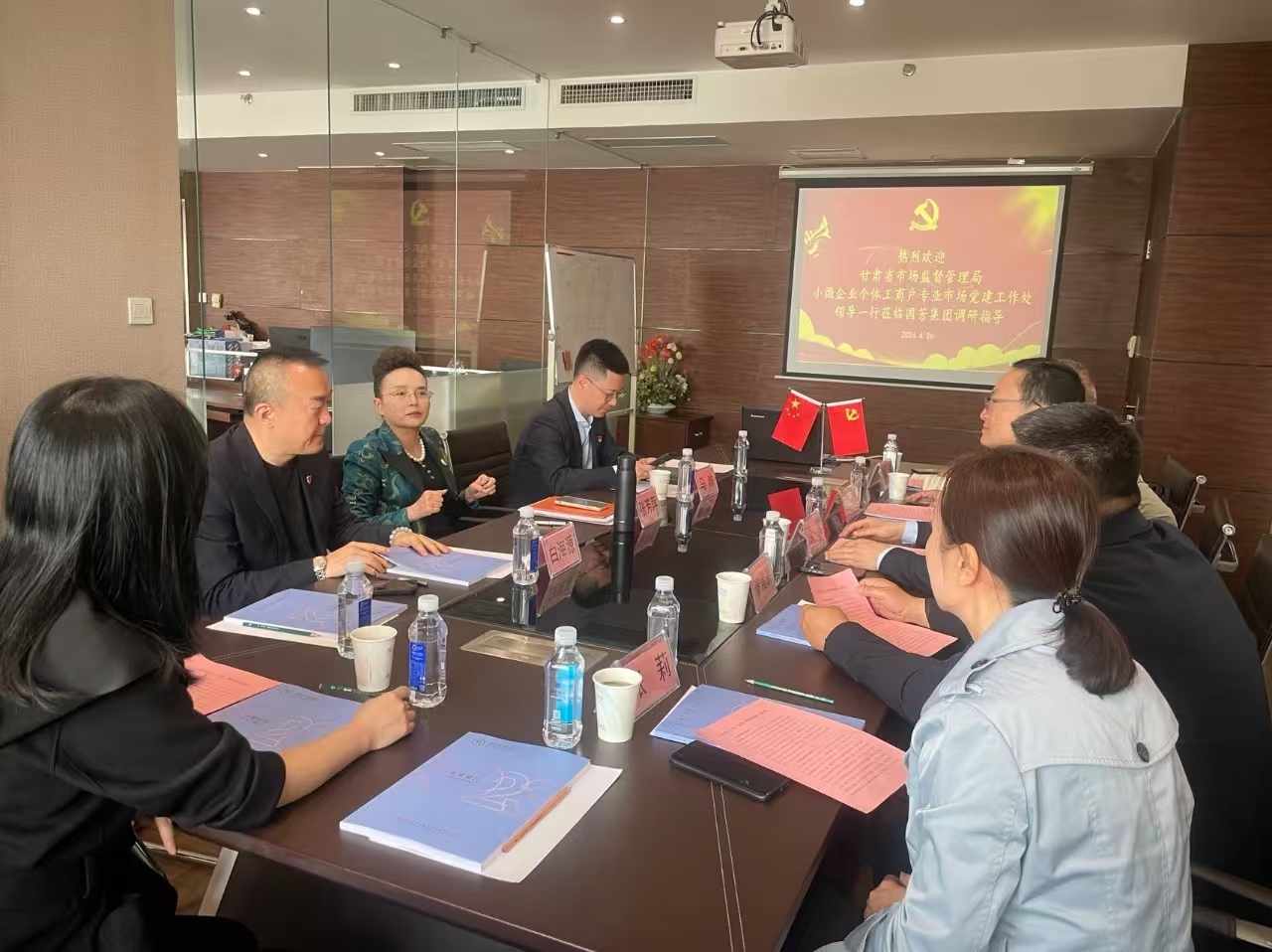 2024年4月26日,甘肅省市場監(jiān)督管理局小微企業(yè)個體工商戶專業(yè)市場黨建工作處侯巍處長與省、市、區(qū)、街道四級市場監(jiān)管局非公有制經(jīng)濟黨建處室相關負責人一行蒞臨國芳集團黨委進行調(diào)研指導并座談交流。